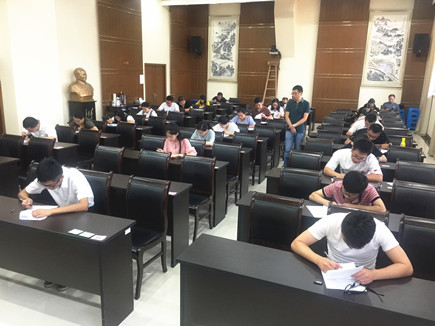 圖為考試現(xiàn)場(chǎng) 為杜絕考場(chǎng)舞弊行為,保證考試過程的嚴(yán)肅公平,現(xiàn)場(chǎng)筆試首次啟用監(jiān)控設(shè)備,考場(chǎng)均“現(xiàn)場(chǎng)直播”實(shí)時(shí)錄像。考試過程組織嚴(yán)密,工作有序,考場(chǎng)紀(jì)律嚴(yán)明,公司副總經(jīng)理董阿林到現(xiàn)場(chǎng)檢查考卷密封情況,親自監(jiān)督考風(fēng)考紀(jì)。 公司人力資源部、監(jiān)察室與征費(fèi)管理部負(fù)責(zé)人全程參與監(jiān)考。 陳一沁