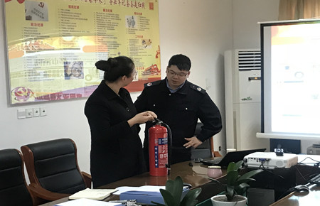 圖為消防安全知識講座現場 講座中,楊教員結合近期發生的火災案例,特別是生活區電器火災、廚房火災、汽車自燃、無人居住建筑突發火災等常見案例,就消防日常巡查以及逃生自救的基本常識、消防火災的應急處理和預防、消防器材的正確使用方法進行了詳細的講解。他著重強調,當發生火災時,應沉著冷靜,使用滅火器時要做到“一看、二搖、三拔、四噴” ,手把手傳授滅火器的正確使用方法。同時通過現場提問的互動方式,調動培訓人員聽課的積極性,使大家深感火災的無情及掌握消防知識的重要性。
