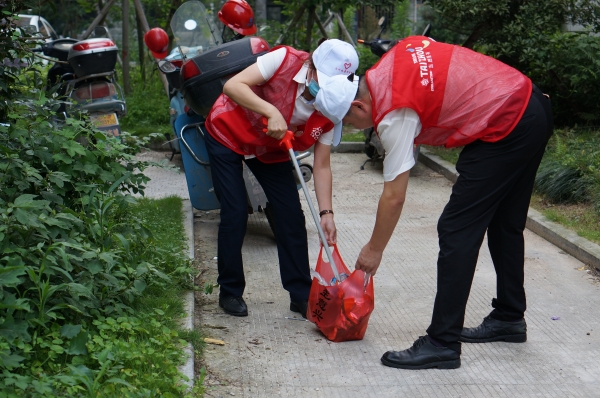 下午2時,該所一行6人在所長王小勇的帶領下抵達九峰社區,在社區負責人的介紹中了解了社區的基本情況,并開展環境衛生清理工作。志愿者們身著志愿紅背心,一手拿垃圾夾一手提垃圾袋,在社區道路、綠化帶里認真撿拾垃圾和煙頭。社區工作人員與志愿者們親切攀談,天氣雖然悶熱,但大家的熱情絲毫不減。活動結束時,雙方探討了結對共建聯絡機制,以確保共建活動常態化開展。