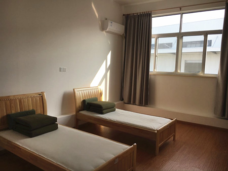 圖為員工寢室內景 此次改造,將原先連接食堂和副站生活區域的鋼棚拆除,新砌成儲物間,并對食堂的布局也進行了重新調整,將洗碗槽由室內移到室外,增加用餐場所的面積,改造后的食堂可容納30多人同時用餐。新食堂內還更換了老舊的碗柜、桌、椅等用具,碗柜統一采用消毒柜。廚房內部被劃分成切配、烹飪、清洗等功能區,下水道蓋一致換成不銹鋼的,倉庫、空調、消毒碗柜等區域及電源插座等都作了加高處理,避免每年汛期時進水使食物受潮霉變,消除插座因進水而漏電的安全隱患。 這次施工不但對食堂進行了改造,而且利用框架在食堂上方再建了一層,增加了五間員工寢室和一間活動室,不僅緩解了住宿擁擠的難題,也讓住所里的員工有娛可樂。 “希望就餐和住宿環境改善后,我們的員工吃住舒心,安心上班?!彼L王益民說。 夏蓮萍