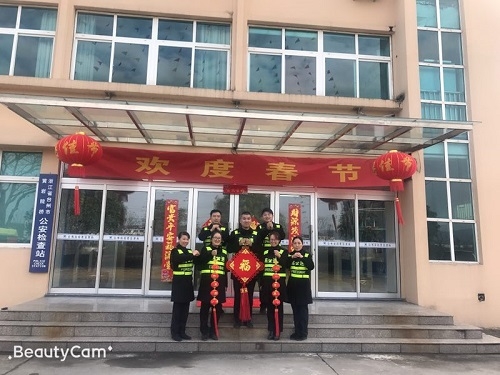 圖為布置好的辦公樓現(xiàn)場 下午,大家對管理房辦公樓道的蜘蛛網(wǎng)進(jìn)行了清理,對大門口進(jìn)行布置:掛起燈籠、貼上對聯(lián)、拉好橫幅和彩旗。考慮到春節(jié)期間保潔員放假,生活垃圾較以往會有所增加,特在各角落多增放了幾只垃圾桶。 負(fù)責(zé)掃塵的同事認(rèn)真對待,干勁十足。在大家的共同努力下,經(jīng)過掃塵后的所面貌煥然一新,節(jié)日的氛圍較為濃厚。該所負(fù)責(zé)人要求大家尊重今天的勞動果實(shí),春節(jié)期間繼續(xù)做好保潔工作。最后,大家即興在大門口合了影,并送上新年的祝福,擁抱充滿希望的2019年! 夏蓮萍