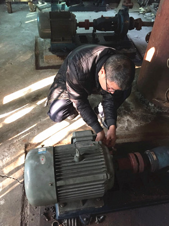 圖為工作人員修理水泵電機現場 因設備比較陳舊,而且原圖紙等資料不全,構造原理無從了解,黃土嶺隧道所所長助理金衛軍帶領執勤隊,一邊推測,一邊根據水泵工作原理和電器修理經驗尋找故障點,對設備可能出現的問題進行反復推敲,逐一排查,最終確定為上水位控制繼電器觸點接觸不良造成導電故障。經過對觸點的調整和修復,以及對軸承部位進行加油和電機、水泵平衡重新調節后,設備之前出現的電機震動、聲音異?,F象和無法自動進水等問題被一一解決,消防水泵恢復正常運作。 此次檢修工作不僅及時消除了安全隱患,確保設備隨時處于良好的待命狀態,在檢修的過程中,也為隊員開展了一次良好的技術培訓。 毛譯聆
