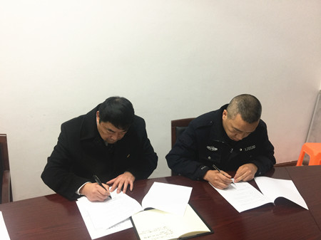 圖為所負責人與班隊長簽訂黨風兼政責任書