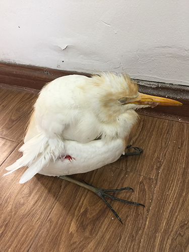 圖為受傷的牛背鷺 走近細(xì)看,這只鳥耷拉著腦袋,有著圓滾滾的小身子,尖尖的嘴巴和細(xì)長(zhǎng)的腿,不同于平常所見的鳥類,其左側(cè)翅膀還有紅紅的血印子,估計(jì)是被人射獵受傷。 后經(jīng)百度查詢,臺(tái)州市林業(yè)專業(yè)人員鑒定確認(rèn),此鳥為省級(jí)保護(hù)鳥類牛背鷺。專業(yè)人員欣慰地說,幸好隧道所人員及時(shí)救助,否則這只鳥鷹會(huì)有生命危險(xiǎn)。它的翅膀受傷嚴(yán)重,這是奮力飛行一段時(shí)間后因受傷而掉落,已經(jīng)沒有了捕殺能力。