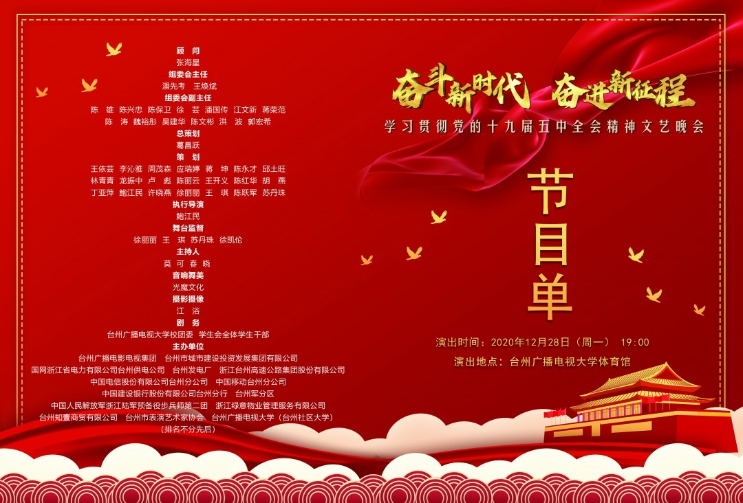 12月28日晚,學習貫徹黨的十九屆五中全會精神文藝晚會在臺州廣播電視大學體育館舉行,資產部副經理林軍代表集團公司參加演出,團委相關人員出席晚會。
