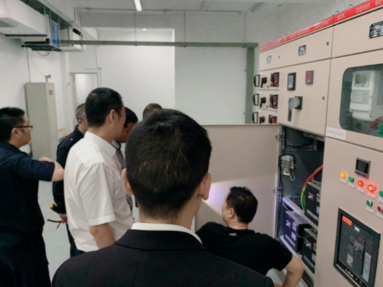 圖為多方合力查找問題現(xiàn)場 5月23日,電力公司上門檢修,告知配電房及電路問題一切正常。面對空調(diào)正常、電路正常的報告,展廳內(nèi)又嘗試開啟空調(diào),但10分鐘左右高壓又跳閘。即將進入炎熱的夏季,房產(chǎn)銷售展廳內(nèi)不能缺少空調(diào)。 房產(chǎn)公司求援于工程部機電設(shè)備維養(yǎng)中心,5月28日,葉俊等四名專業(yè)電力人員,以及大溪嶺隧道所金衛(wèi)軍赴銷售廳對電力問題進行現(xiàn)場勘察,經(jīng)仔細梳理、剖析,得出結(jié)論后反饋給電力部門,電力部門采納建議后第二次派人前來整改,歷史遺留電力問題終于徹底排除。 鄭攀